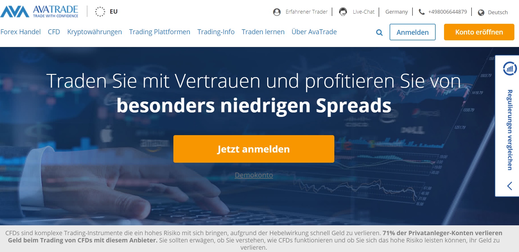 Wenn Sie nach Online-Brokern suchen, werden Sie häufig auf den Namen von AvaTrade stoßen. Es ist einer der bekanntesten Online-Broker, der Devisen- und CFD-Handel für Händler aus vielen Ländern der Welt anbietet. Man kann sagen, dass es nicht viele Makler gibt, die so gut sind wie dieser. Sprechen Sie über alle Funktionen, die ein Trader von einem Broker erwarten sollte, und Sie werden hier keine finden, die fehlen. Was macht AvaTrade also besser als die meisten Wettbewerber? Wie macht dieser Broker Hunderttausende von Händlern aus der ganzen Welt mit ihrer Handelserfahrung so glücklich?